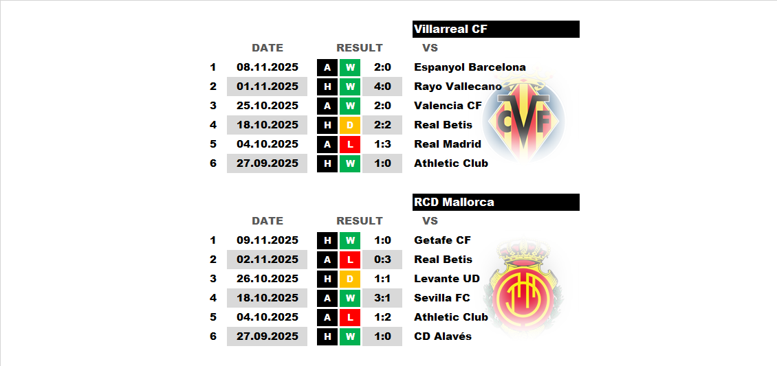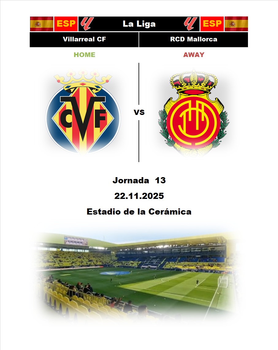 BetTop-5 опубликовано 21.11.2025 22:24 Villarreal - Mallorca 23:00 22.11.2025 Football Spain. La Liga. Mallorca Villarreal La Liga Spain 0 3
