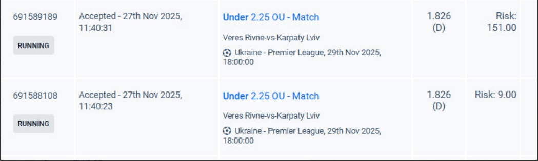 Тут також очікую зарубу, де ніхто не буде поступатись. Математично команди грають на ТМ 2.5. Верес вдома лише один раз програв Поліссю (1:4), а Карпати лише раз на виїзді пробили ТБ 2.5 (2:2 Кудрівка). Не здивуюсь, якщо взагалі зіграють 0:0.