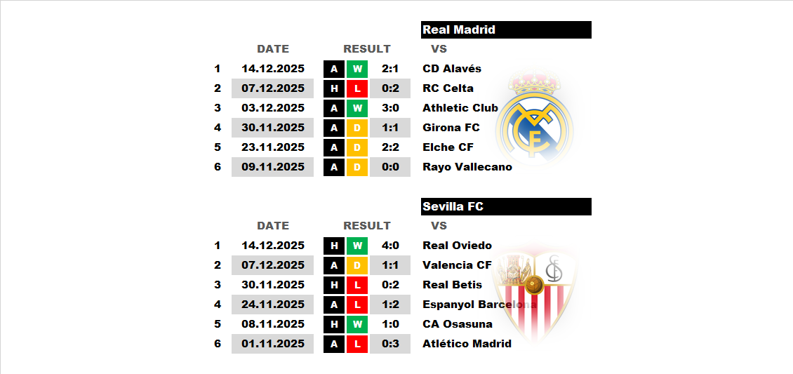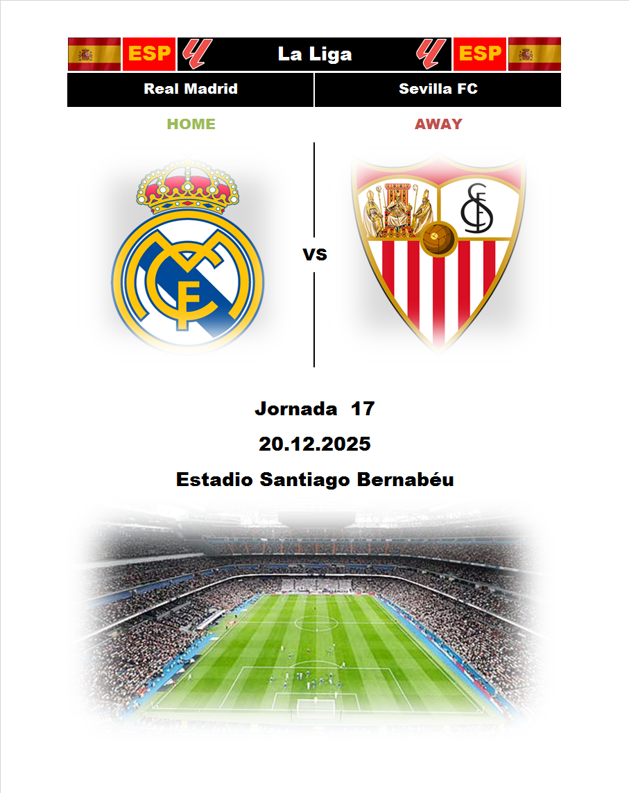 BetTop-5 опубликовано 19.12.2025 23:20 Real Madrid - Sevilla 23:00 20.12.2025 Football Spain. La Liga. Real Madrid Sevilla La Liga Spain 0 2