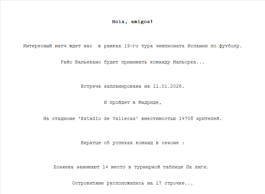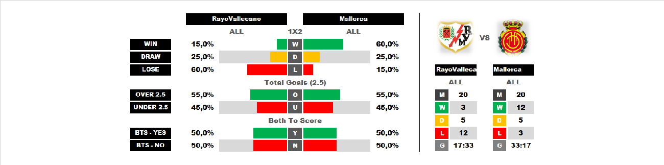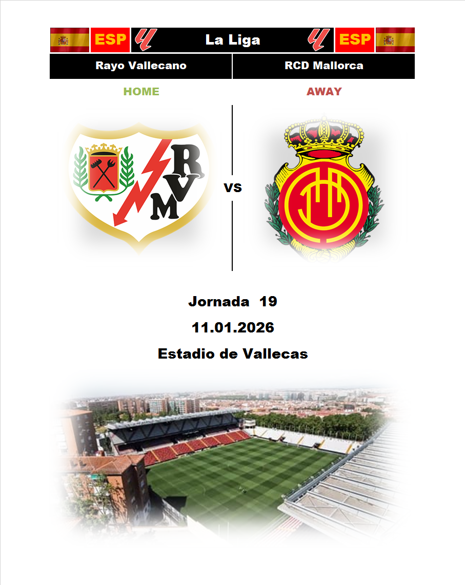 BetTop-5 опубликовано 10.01.2026 20:16 Rayo Vallecano - Mallorca 16:00 11.01.2026 Football Spain. La Liga. Mallorca Rayo Vallecano La Liga Spain 0 1