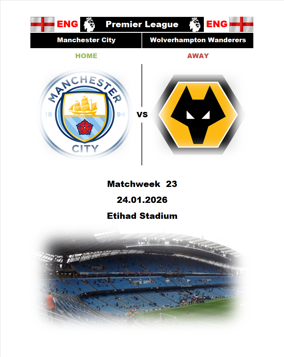 BetTop-5 опубликовано 20.01.2026 23:14 Manchester City - Wolverhampton 18:00 24.01.2026 Football England. Premier League. Premier League England Manchester City Wolverhampton 0 6