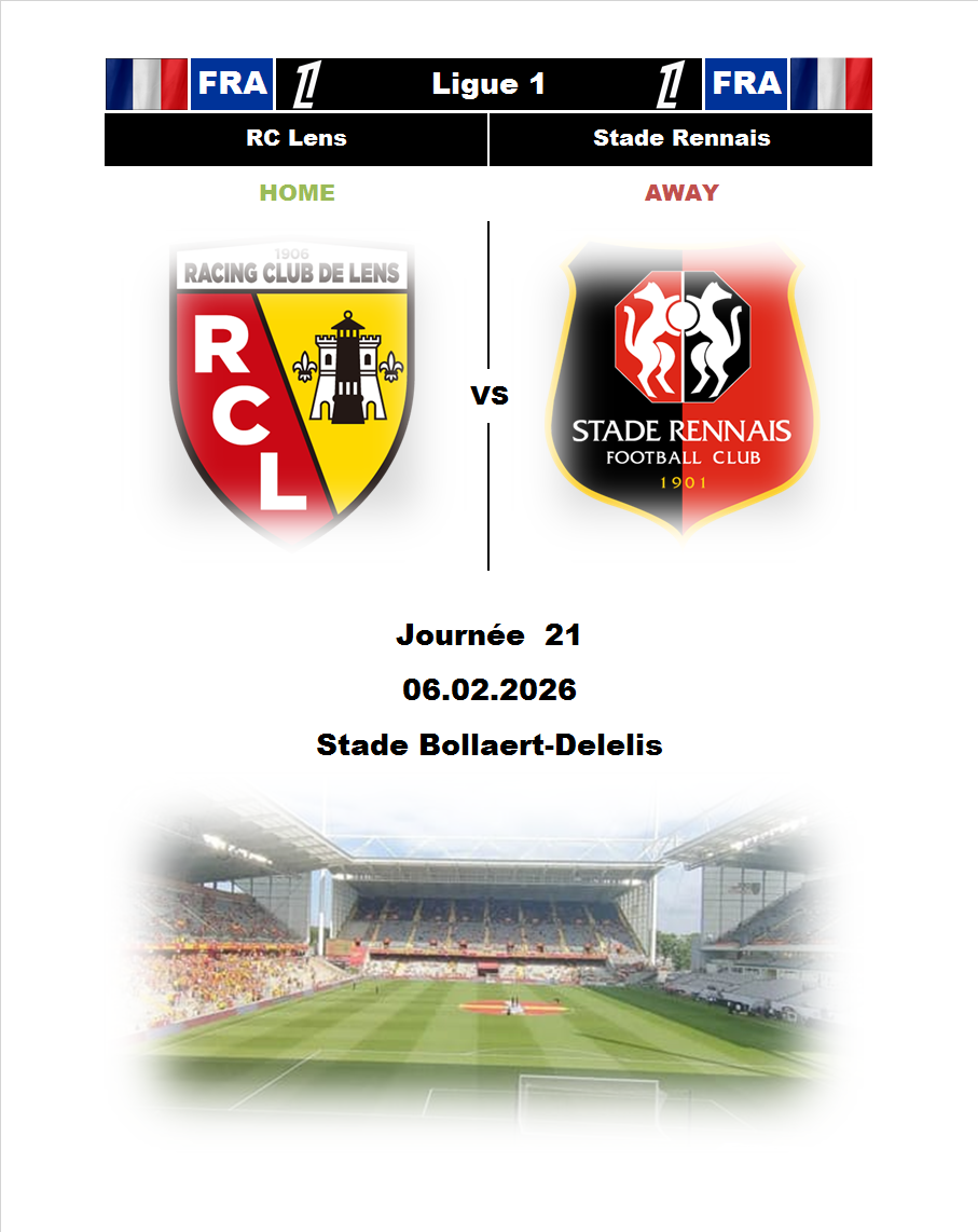 BetTop-5 published 04.02.2026 23:30 Lens - Rennes 19:00 07.02.2026 Football France. Ligue 1. Ligue 1 Rennes Lens France 0 2