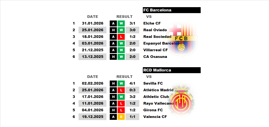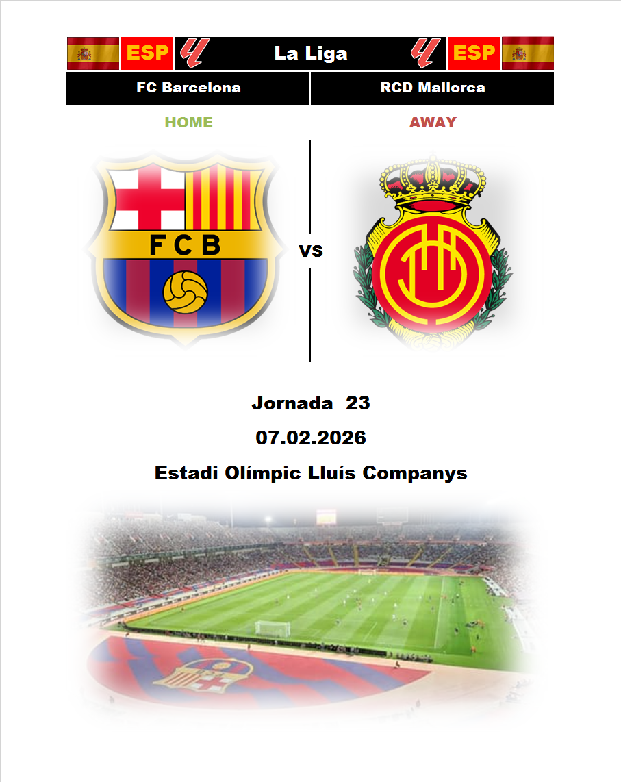 BetTop-5 published 06.02.2026 21:38 Barcelona - Mallorca 18:15 07.02.2026 Football Spain. La Liga. 0 4