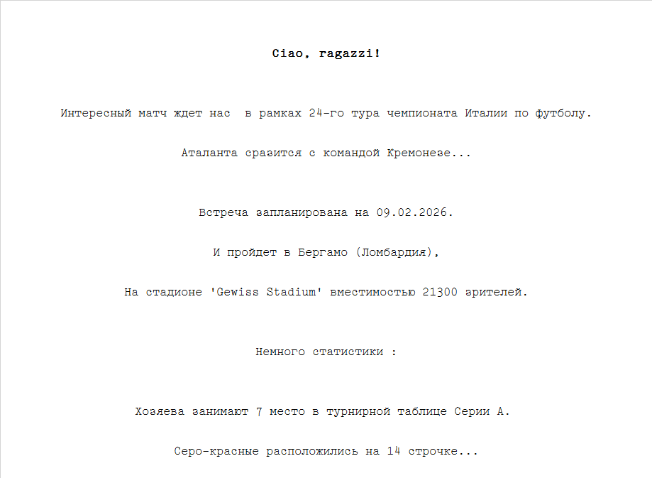 BetTop-5 published 08.02.2026 13:16 Atalanta - Cremonese 20:30 09.02.2026 Football Italy. Serie A. 0 2