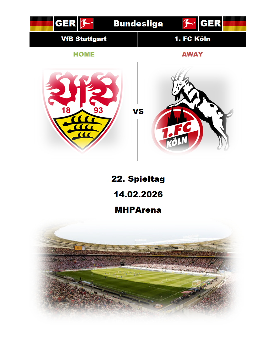 BetTop-5 published 12.02.2026 01:09 Stuttgart - FC Koln 20:30 14.02.2026 Football Germany. Bundesliga. 0 5
