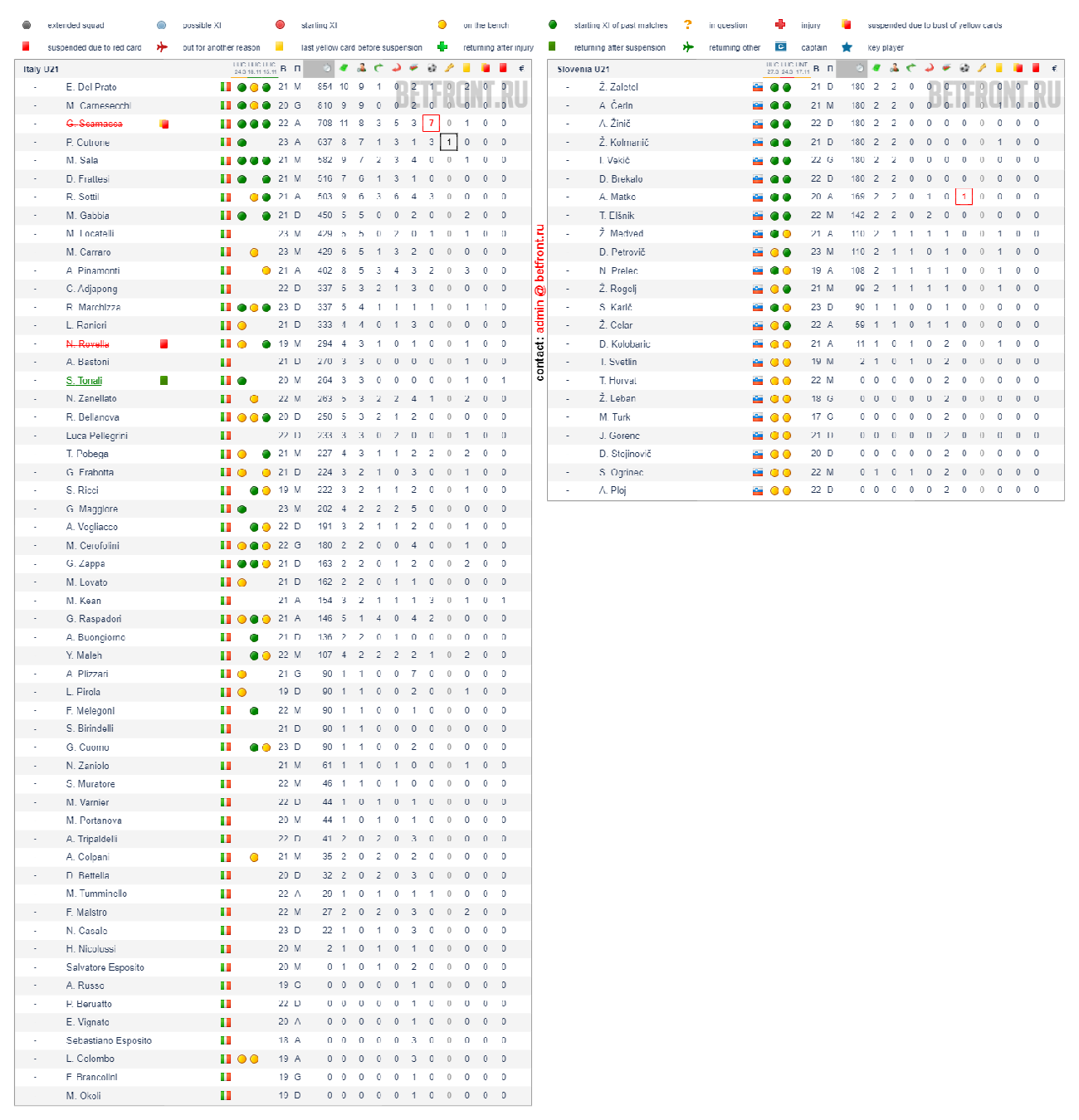 Италия 21 - Словения 21 . У Италии основной нападающий и защитник из-за красных карт пропускают