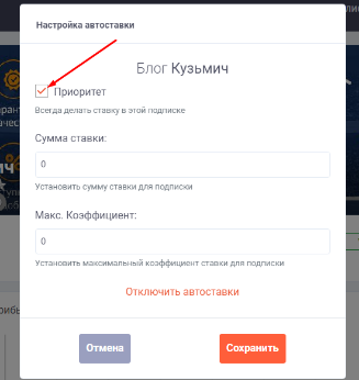 Здесь же, вы можете установить максимальный коэффициент для автоставки за данным блогом. После изменений, нажмите Сохранить.