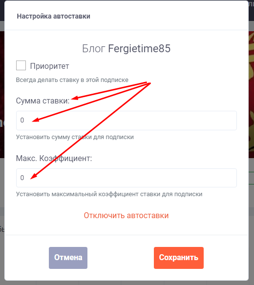 Чтобы изменить размер ставки за отдельным беттером, вам необходимо кликнуть на активную подсписку на автоставки в блоге и установить сумму ставки за беттером.