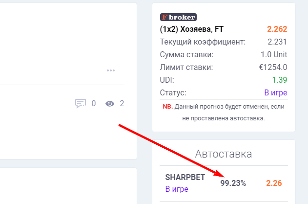 Иногда случается так, что букмекер или брокер не принимает ставку в силу разных причин: снятие линии, изменение коэффициента, технические сбои и.т.д. После каждой ставки в сообществе, под купоном ставки, мы выводим процент проставления автоставки.