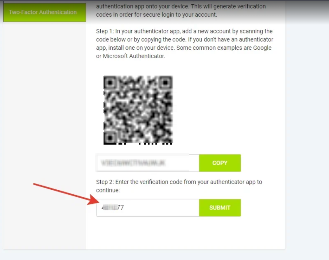 Появится QR код, через который добавляем биржу ставок в приложении google authenticator. Теперь, каждую минуту будет обновляться код доступа, который мы сразу вводим вторым шагом для активации двух факторной защиты!
