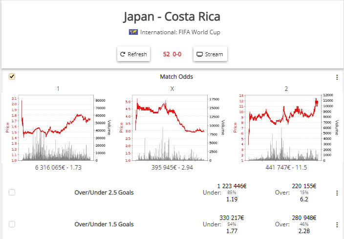 Это простой сервис для просмотра графиков Betfair, здесь представлены основные рынки по футболу.