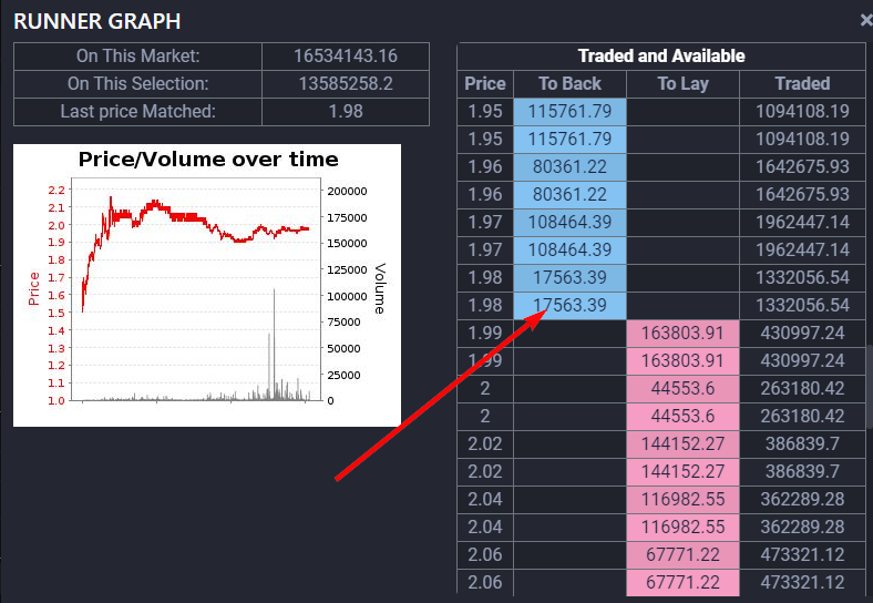 При просмотре графиков Бетфаир можно увидеть суммы заключенные в пари по каждому коэффициенту. Сматченные суммы отображаются в национальной валюте Индии, чтобы понимать сколько денег заключено в пари под коэффициентом, необходимо разделить данную сумму на 8 и тем самым получить сумму в валюте евро.
