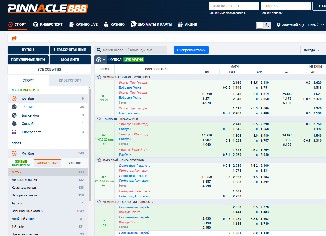 Коэффициенты, лимиты, обновление данных, лайв, киберспорт и.т.д - все одинаково работает на pinnacle888.com и на ps3838.com