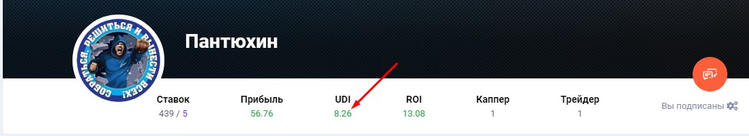 За счет показателя-валуйности ставок на спорт UDI можно быстро и самое главное на короткой дистанции определить какие прогнозы от профессиональных капперов будут давать плюс на дистанции.