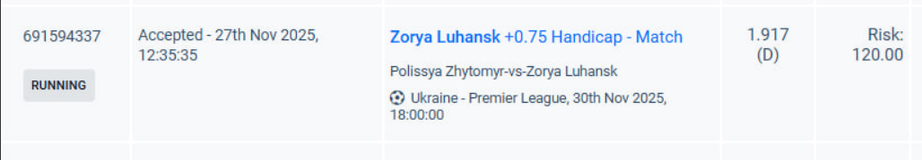 Полісся три домашніх гри грає з однаковим рахунком - 0:0. І якщо Шахтар та Металіст 1925 ще можна віднести до складних команд, то не виграти Епіцентр у останньому турі, це вже недобір своїх очок. Виходить, що з командами вище середнього, вдома у Поліссі проблеми, оскільки легкі перемоги були лише над аутсайдерами: Кудрівкою та Полтавою. Зоря це явно сильніший суперник. Та й непогану форму демонструють останнім часом - 7 матчів не програють. Тому очікую на зарубу і точно не на програш Зорі в два м"ячі. 3% на (+0.75).