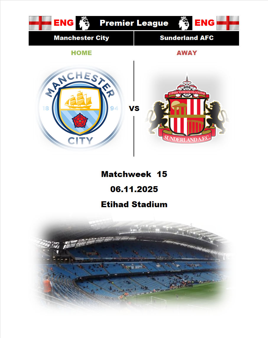 BetTop-5 опубликовано 05.12.2025 19:34 Manchester City - Sunderland 18:00 06.12.2025 Football England. Premier League. Premier League England Manchester City Sunderland 0 1